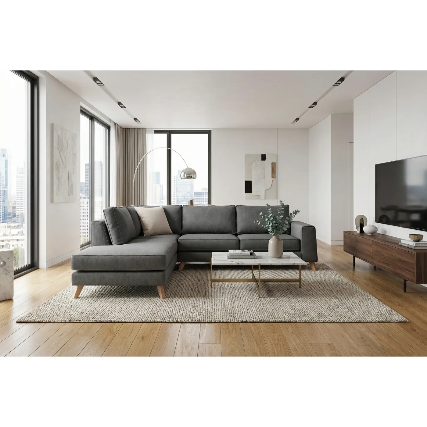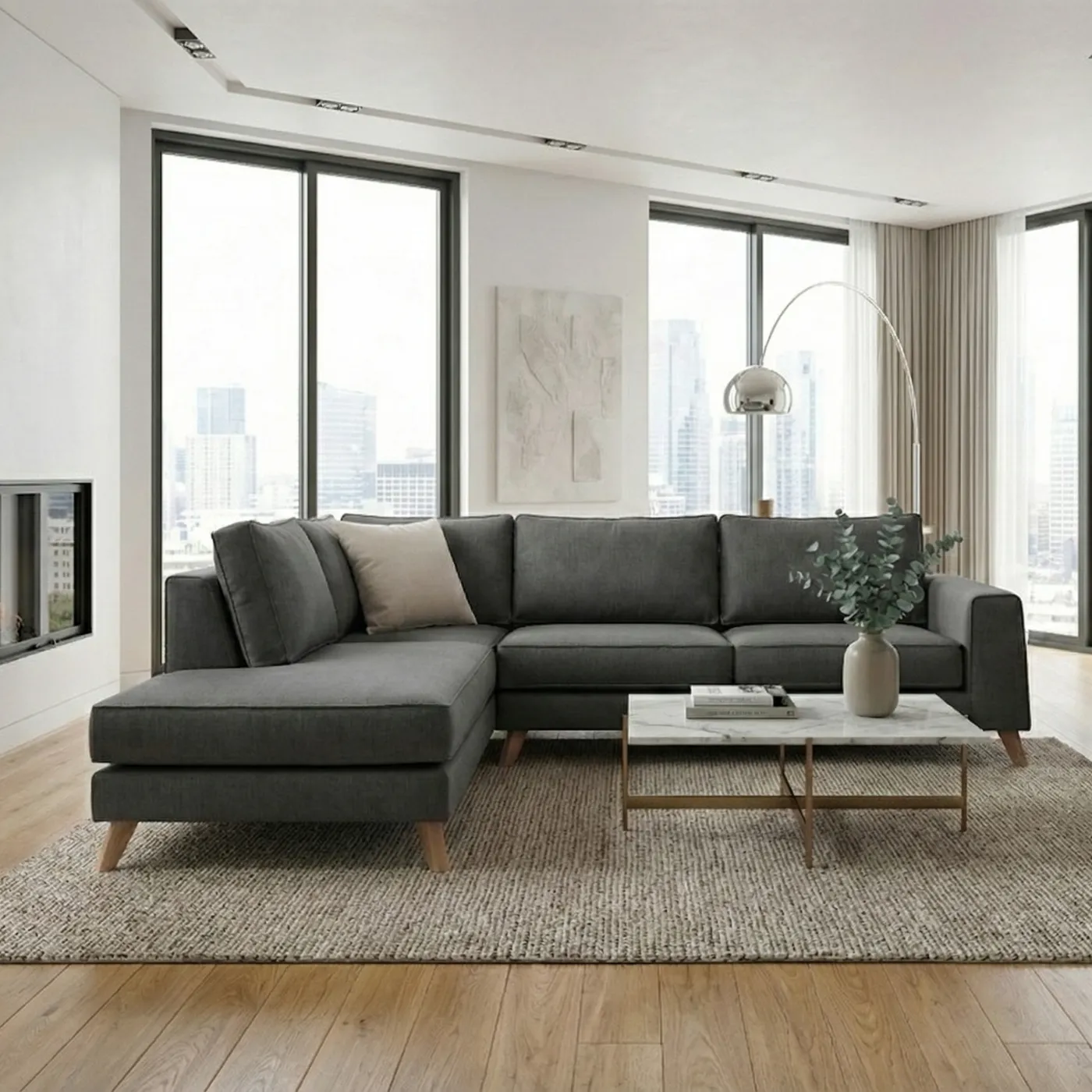 Alfa γωνιακός καναπές με minimal σχεδιασμό για το καθιστικό σας.
