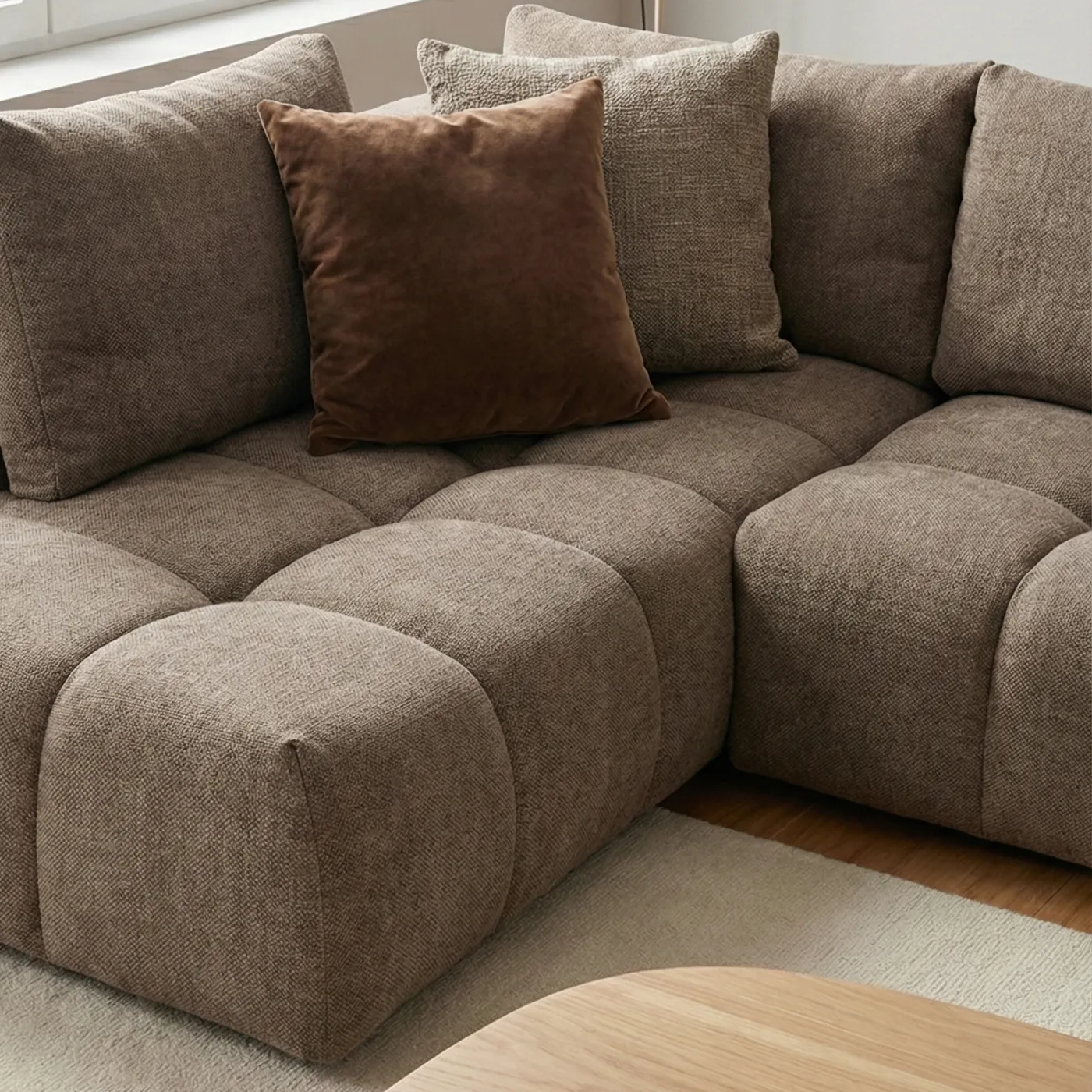Cloud γωνιακός καναπές, μοντέρνος σχεδιασμός με ιδιαίτερη τεχνική μοντέρνου καπιτονέ.