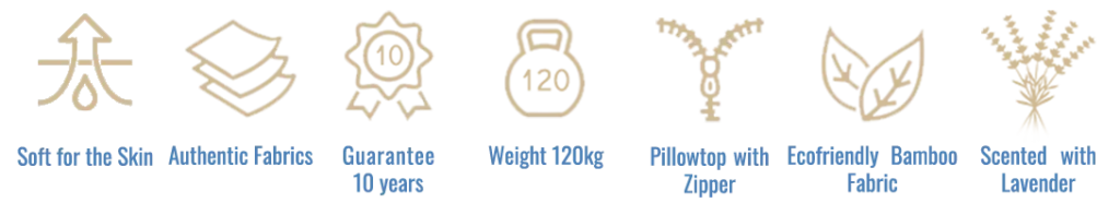 Το στρώμα Levanda μετατρέπει τον ύπνο σας σε μια αξέχαστη εμπειρία. Το πολυτελές eco-friendly Bamboo ύφασμα του, κρύβει μια στρώση αποξηραμένης λεβάντας, εμποτισμένη με φυσικά αιθέρια έλαια, που δίνει στα ονειρα σας ενα εκπληκτικό άρωμα.