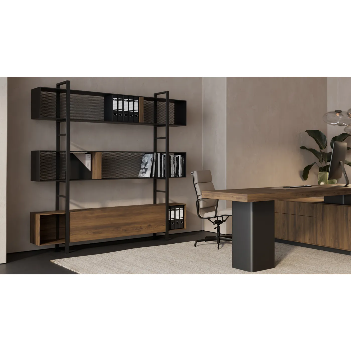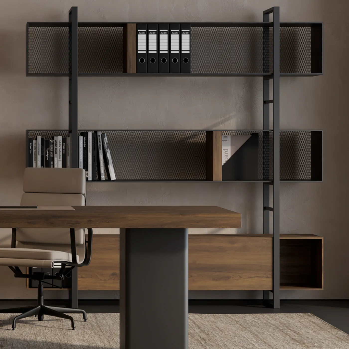Βιβλιοθήκη Plegma, σας παρουσιάζουμε ένα εκλεπτισμένο έπιπλο που συνδυάζει την ανθεκτικότητα του μεταλλικού σκελετού με τη ζεστασιά του ξύλου δρυός, δημιουργώντας ένα εκπληκτικό έπιπλο για τον χώρο σας.