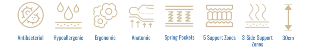 Στρώμα με αντιβακτηριδιακή επεξεργασία για την καταπολέμηση μέρους των βακτηρίων και των ακάρεων, προσφέροντας ένα πιο υγιεινό περιβάλλον ύπνου. Συνίσταται προστατευτικό κάλυμμα