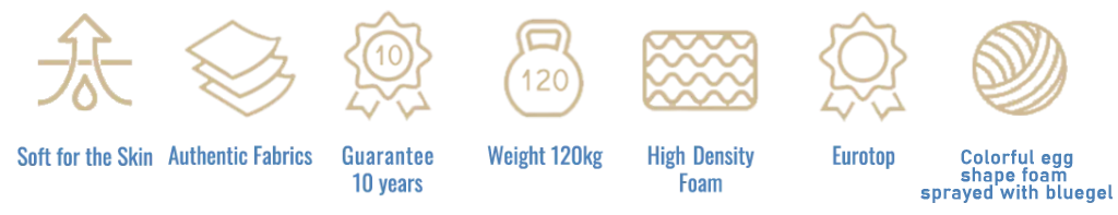 Εμπνευσμένο από τα Ελληνικά καλοκαίρια στις Κυκλάδες, το στρώμα SANTORINI προσφέρει αυτό που υπόσχεται το όνομά του. Το κυματοειδές αφρώδες υλικό, εμποτισμένο με BLUEGEL, χαρίζει μία αίσθηση δροσιάς, αντάξια με το ελαφρύ μελτέμι που συνοδεύει τα Ελληνικά νησιά. Τα ανεξάρτητα ελατήρια, οι 8 ζώνες στήριξης, το αποσπώμενο ανώστρωμα και τα πολυτελή υλικά του είναι μόνο κάποια από τα χαρακτηριστικά που ενισχύουν την μοναδική εμπειρία του ύπνου.